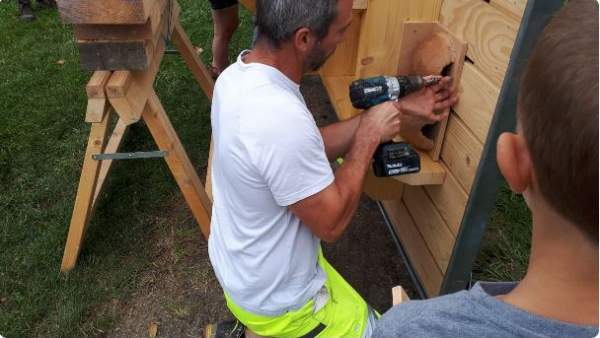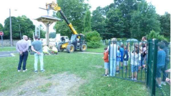 Les enfants de Port-de-Lanne ont contribué à l'installation d'une tour à hirondelles, devant leur école